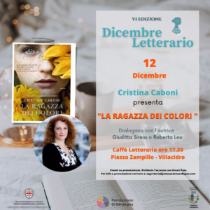 Il 12 dicembre, il terzo e ultimo incontro della rassegna: Cristina Caboni presenterà “La ragazza dei colori” (Garzanti), una storia che attraverso le ricerche di Stella, protagonista del romanzo, fa riemergere un episodio storico poco conosciuto ma molto significativo dell’Italia fascista. Dialogheranno con l’autrice Giuditta Sireus e Roberta Leu.