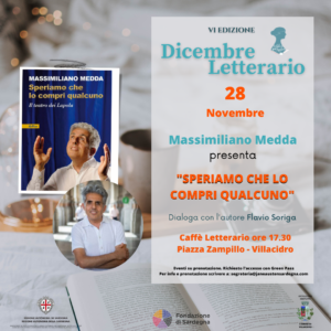 A inaugurare la nuova edizione del Dicembre letterario domenica 28 novembre sarà l’attore e regista Massimiliano Medda, da poco sbarcato in libreria con “Speriamo che lo compri qualcuno” (edito da Janus), una raccolta delle commedie da lui scritte e messe in scena dal gruppo Lapola di cui fa parte, nato a Cagliari trentacinque anni fa. Con l’autore dialogherà Flavio Soriga.